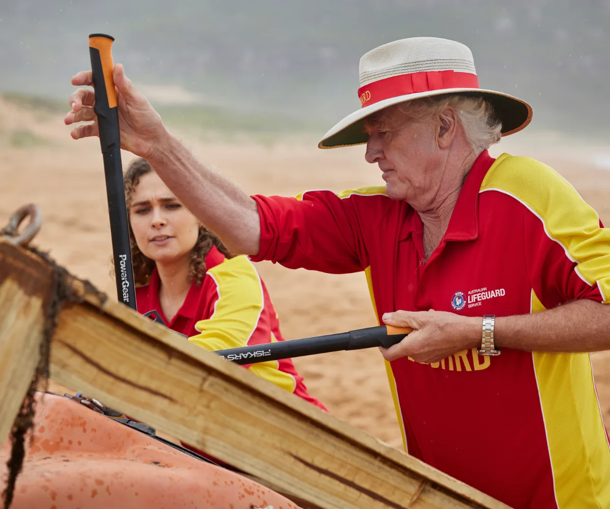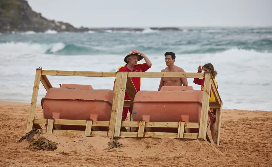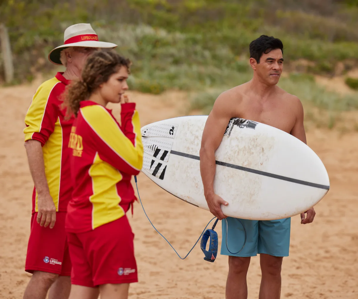 The intrigue begins when lifeguards John (Shane Withington) and Dana (Ally Harris) discover unusual debris washed up on the beach during their shift.