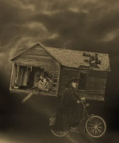 The twister wasn’t actually a twister. To create the same effect in a safer way, a 35-foot muslin stocking was used and swirled with dirt and dust.