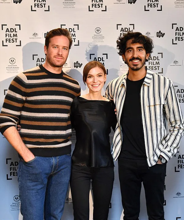 Armie Hammer, Tilda Cobham-Hervey and Dev Patel promoting Hotel Mumbai in Adelaide. (AAP Images)