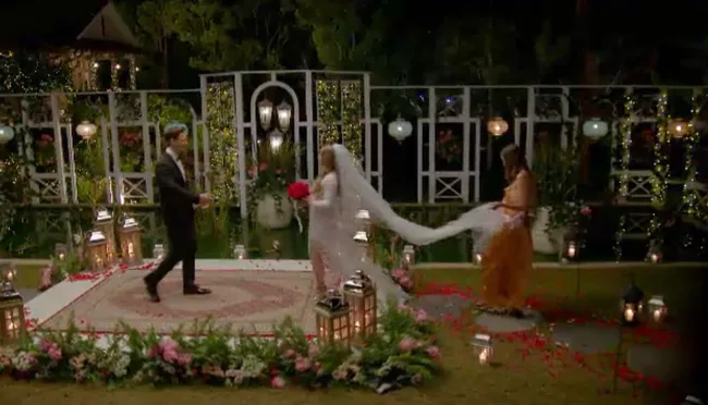 23-year-old personal trainer, Rachael runs to the finish line by turning up as a bride, with bestie (and taken) Tonya in tow.