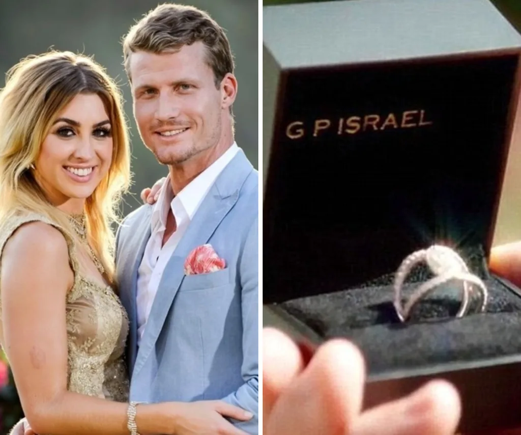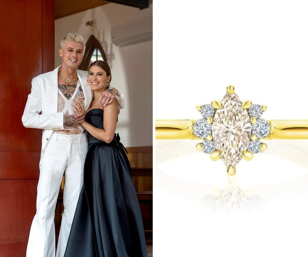 (IMAGE: Ten/Larsen Jewellery)Jed ‘proposed’ to Alesia with a yellow gold champagne ring crafted by (you guessed it) Larsen Jewellery as an emblem of intimacy and romance, and symbol of his ongoing commitment to her. This was despite the fact Alesia repeatedly told him throughout the season that she would not accept a proposal.