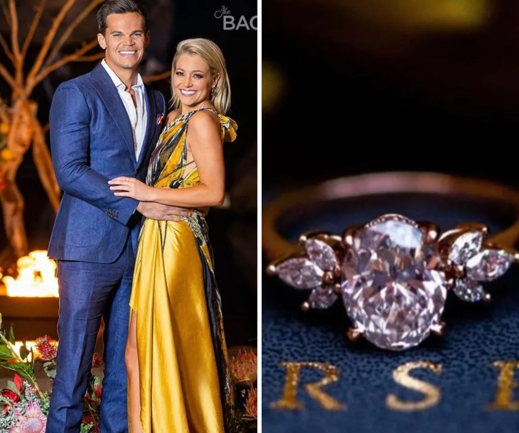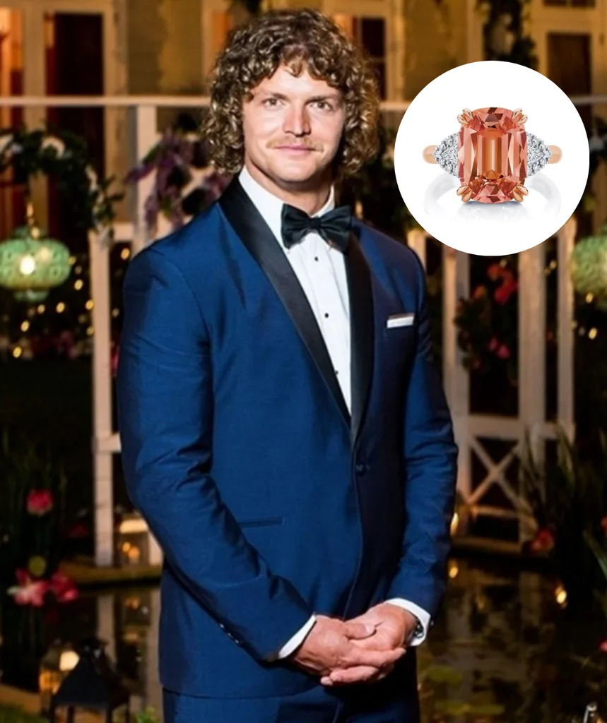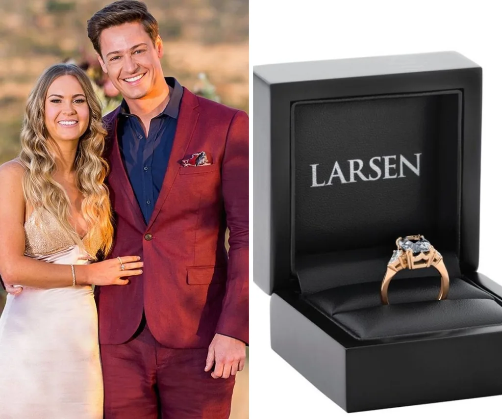(IMAGE: Ten/Larsen Jewellery)Scientist Matt Agnew chose chemical engineer Chelsie McLeod on his season of the hit reality franchise, going on to present her with a chunky diamond ‘memory’ ring, again designed by Larsen Jewllery, and estimated to be worth around $30,000.