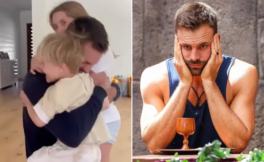 An emotional Beau Ryan has reunited with his children after dramatically quitting I’m A Celebrity… Get Me Out Of Here! to go home to them.