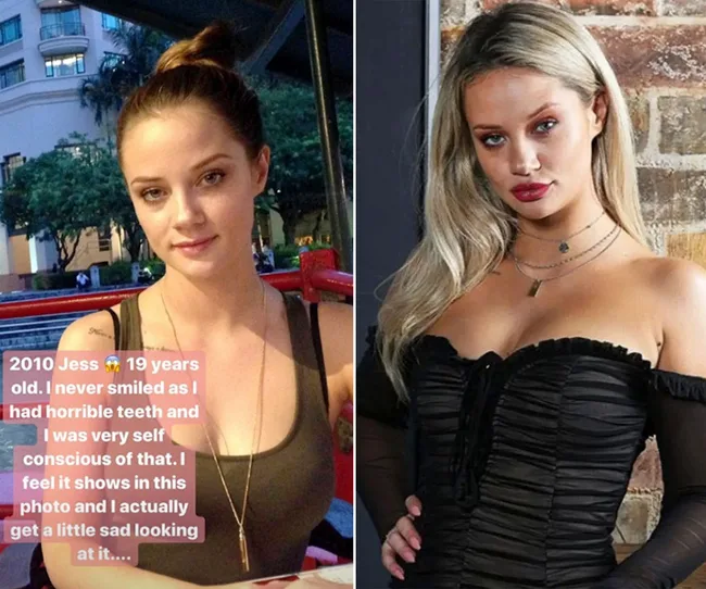 After struggling with insecurities in her teens, Jess underwent a number of cosmetic procedures before she starred on Big Brother VIP. She spent a reported $60,000 on everything from a fat transfer treatment on her breasts to shiny porcelain veneers.