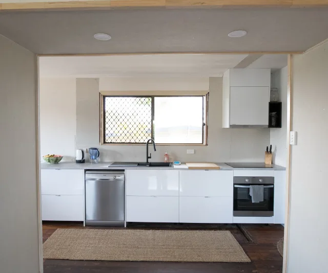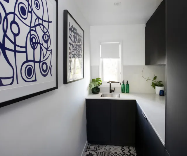 Tamara wasn’t sold on Kimmy and Rhi’s mismatched tiled floor, but the judges absolutely loved what the sisters pulled off in a small space, particularly when it came to their storage solutions.