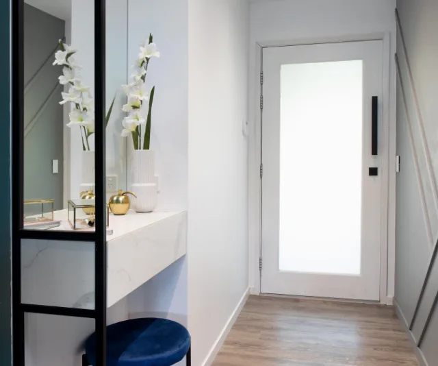 Kayne and Aimee took the minimalism brief a step too far with their hallway. There was little in the room other than the marble hallway. While LLB liked the bold move, Kyly and Saul thought it would date quickly.