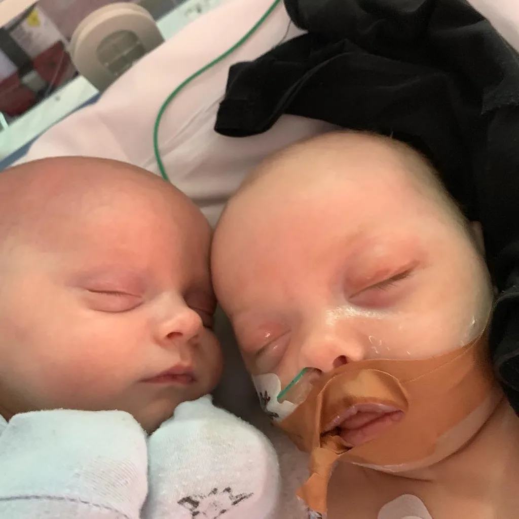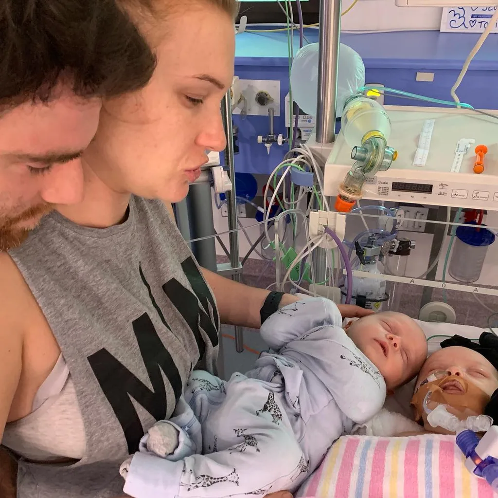Jimmy and Tori with their twins Mack and Vinny in ICU. (Image: @rees_tori/Instagram)