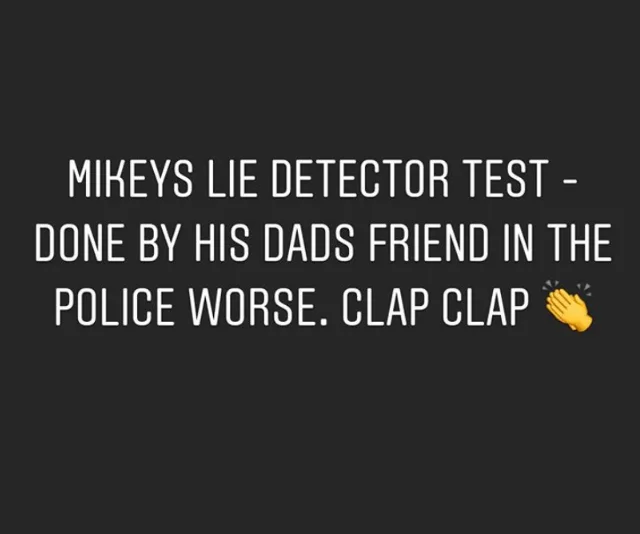 The law graduate, who vehemently denied all the claims that she slept with Mikey, shared a typed image to her Instagram stories that read, “Mikey’s lie detector test – done by his dad’s friend in the police force. Clap clap.”