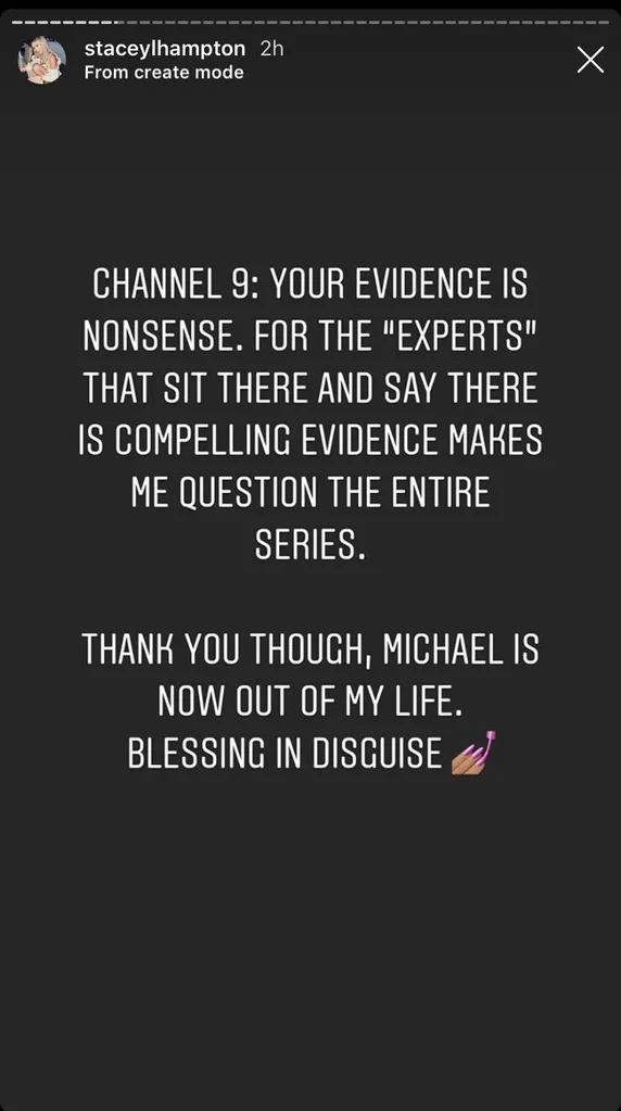 Stacey also shared a post slamming Channel Nine calling their evidence “nonsense.”