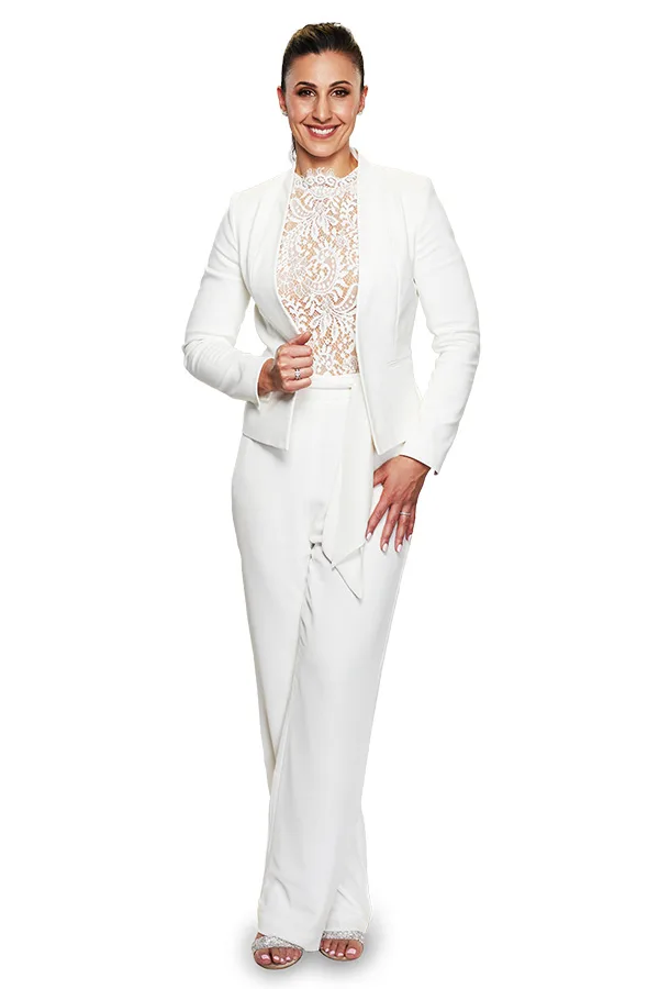 Amanda chose to wear a chic white jumpsuit on her wedding day.