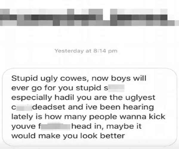 While we don’t condone naming and shaming, we will be sharing the messages the bullies have sent with names blurred out.