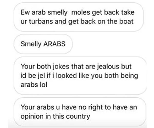 Be warned, these messages are racist, cruel and may be triggering for people who have suffered from online bullying.