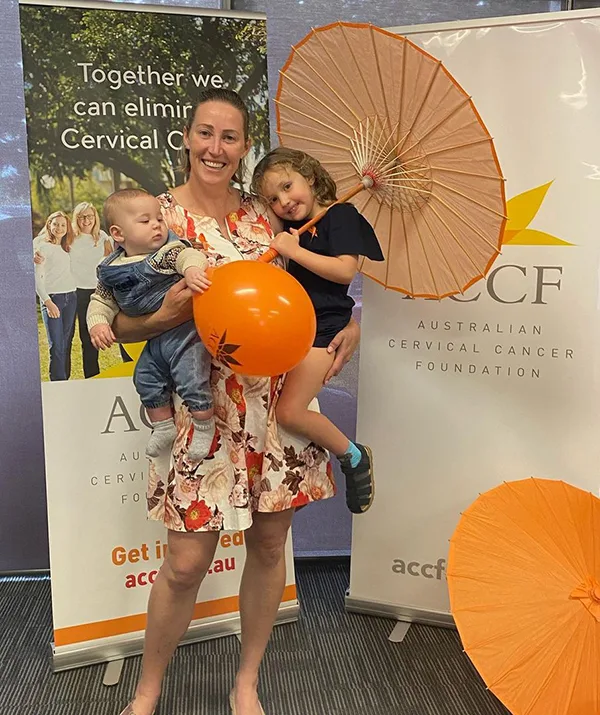 Jemima, four, and little Charles already share an unbreakable bond. The pair are pictured with their mum at a cervical cancer charity event.