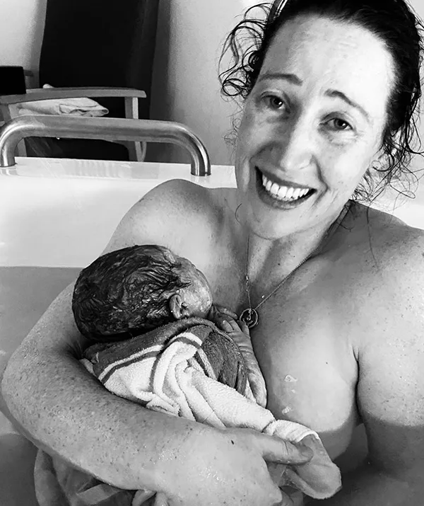 “I was looking forward to the experience of my first water birth, so the hospital room was full of candles and I had my own special music,” the former Olympic hurdler said.