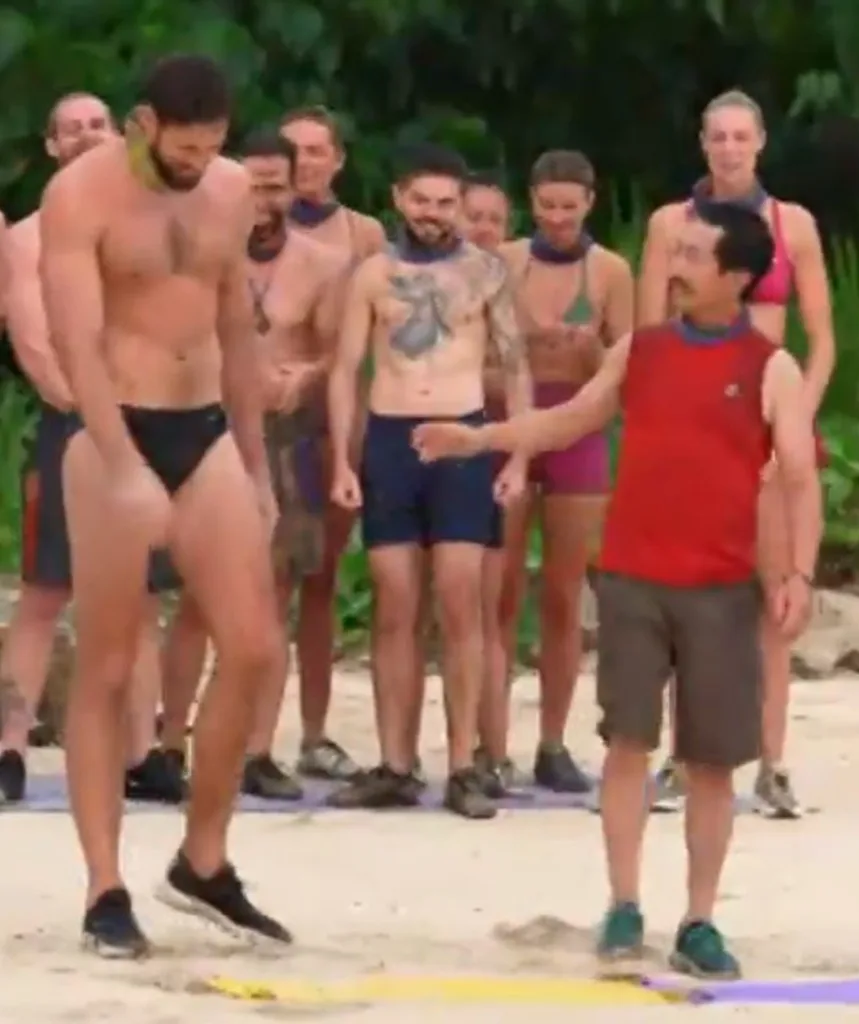 When revealing to Jordie that he has found an idol, Jordie wants to cop a feel. But it’s not that easy given the idol is shoved in between Simon’s ar** cheeks.