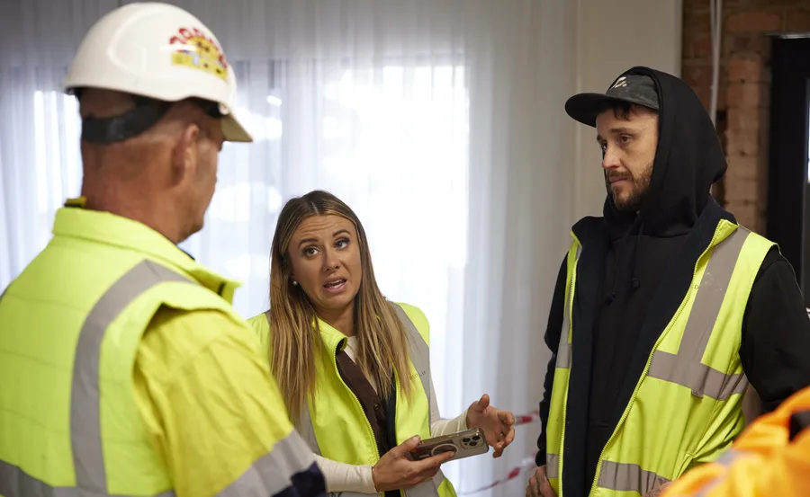 They proceeded to list examples where their fellow teammates had ‘cheated,’ including bribing tradies with alcohol to complete a job, Steph’s dad wrongfully working on-site and waterproofing being approved early.
