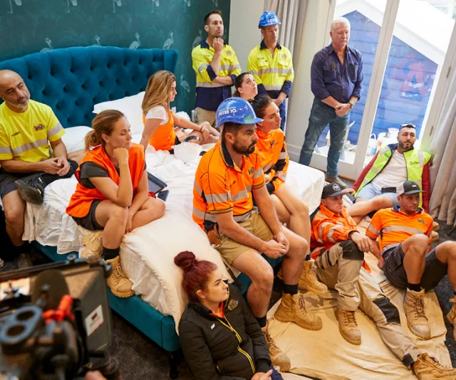 (Channel Nine)Realising COVID-19 was rapidly affecting Australia, Julian and The Block team began planning for a possible stop work, then pushed those plans into action when New Zealand, and then London, suddenly locked down from the rest of the world.