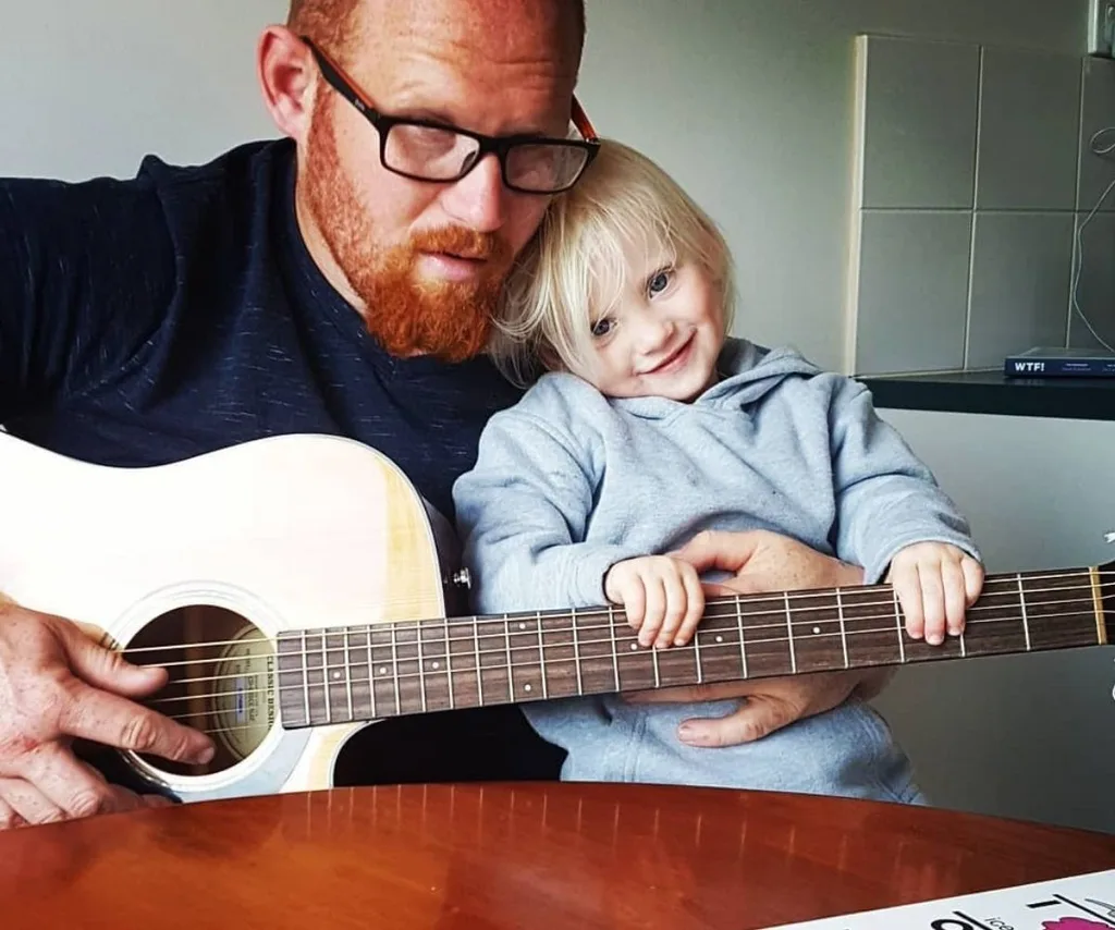 Mick singing with one of his daughters.