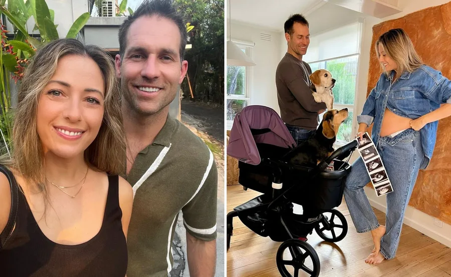 Dan and Dani took to social media to share their exciting pregnancy news, where the couple posed with their beloved dogs Hazel and Olive alongside a pram. Dani, holding some ultrasound photos, wore an adorable double denim set that shows off her growing baby bump.