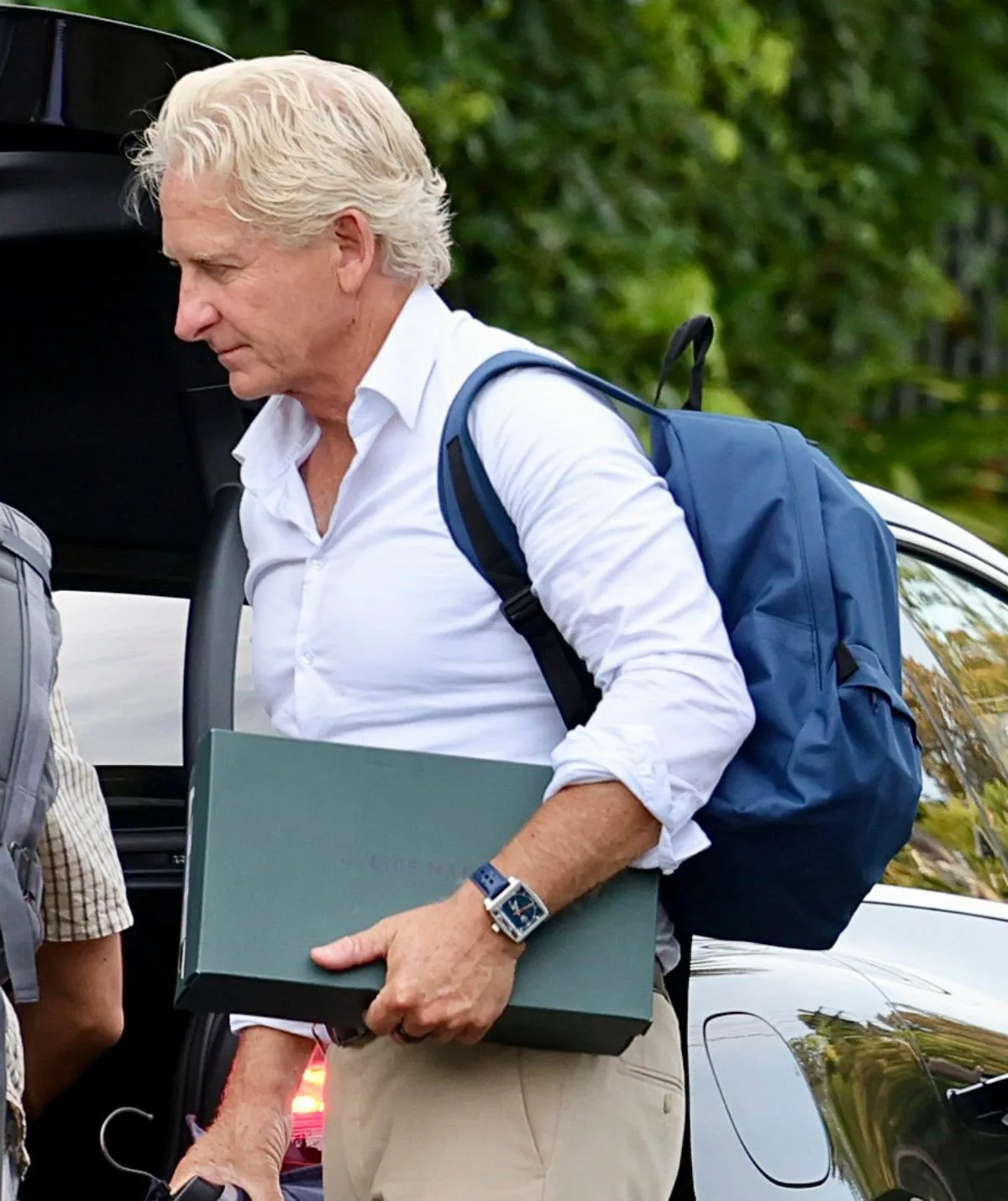 Both men were photographed making their entrance in tailored trousers and button-down shirts, carrying matching garment bags as they prepared to suit up for a big night of introductions.