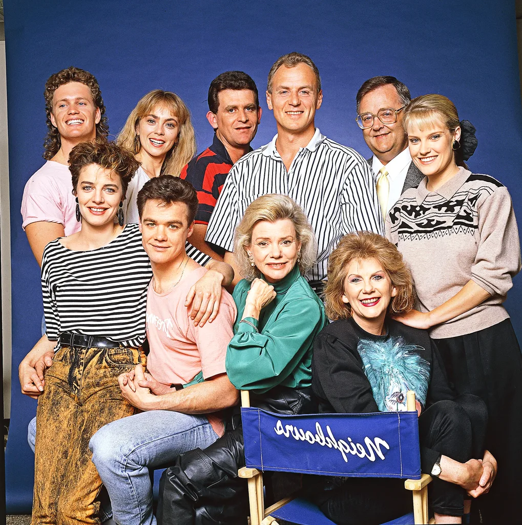 Flashback to 1988: Alan (centre) with the Neighbours cast.