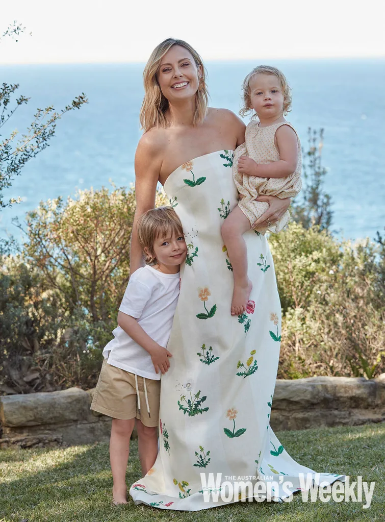 We’re on Sydney’s northern peninsula, atop a grassy headland overlooking Palm Beach. A dolphin pod frolics off the cliffs as Allison’s own pod – son Mack, four, and daughter Scout, two – puff soapy spheres onto the spring breeze.