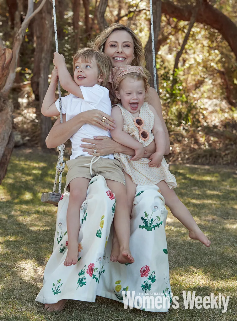 And here’s something else: Allison Langdon is an enthusiastic swinger. On the rope swing at The Weekly’s shoot, she swoops and soars, kicking her heels up for speed and height. Her husband, Michael Willesee Jr, 53, watches in awe. “Ally’s a big kid at heart,” he laughs. “Before Mack and Scout arrived, she was ‘naughty Aunty Ally’ revving the family’s kids up with lollies, games and stories … then handing them back.”