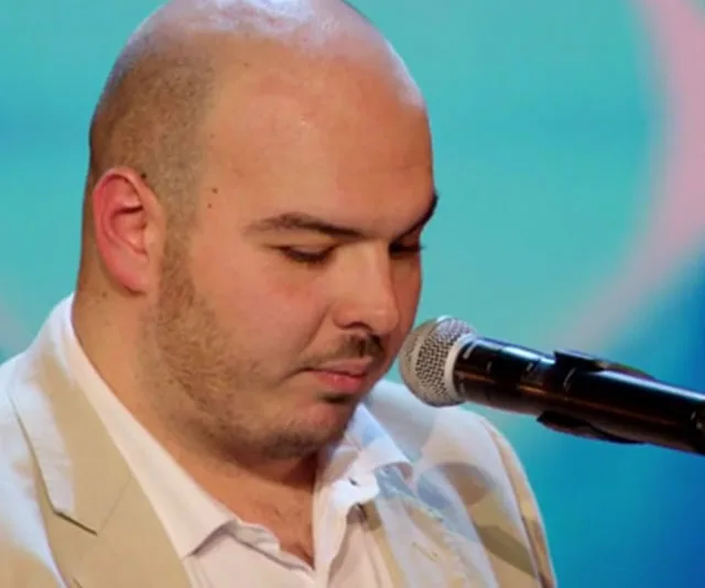 Blind contestant Paul performs on stage to a standing ovation