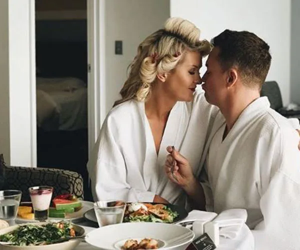 The Denyers shared a romantic snap from their Gold Coast hotel room.