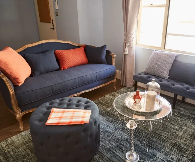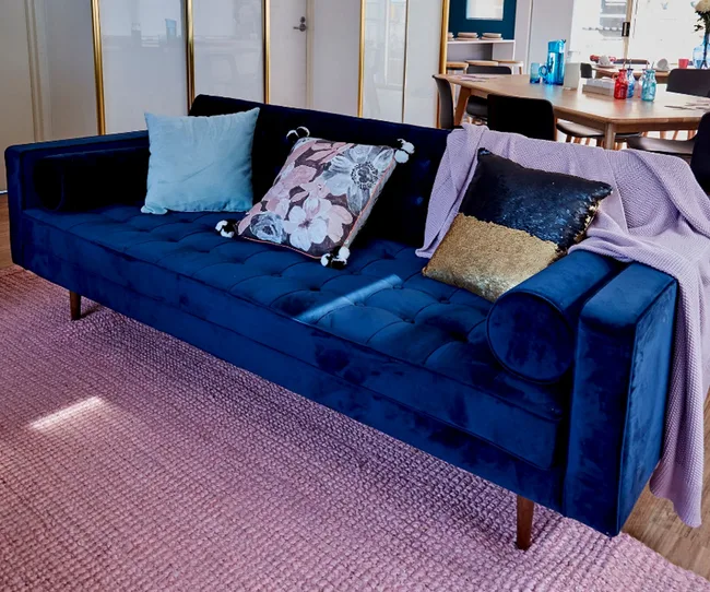 Andrew and Jono – lounge room: Drew and Wendy loved that part of the seating arrangement became a slide-out coffee table as it hit the house rule of ‘make one thing do two things.’