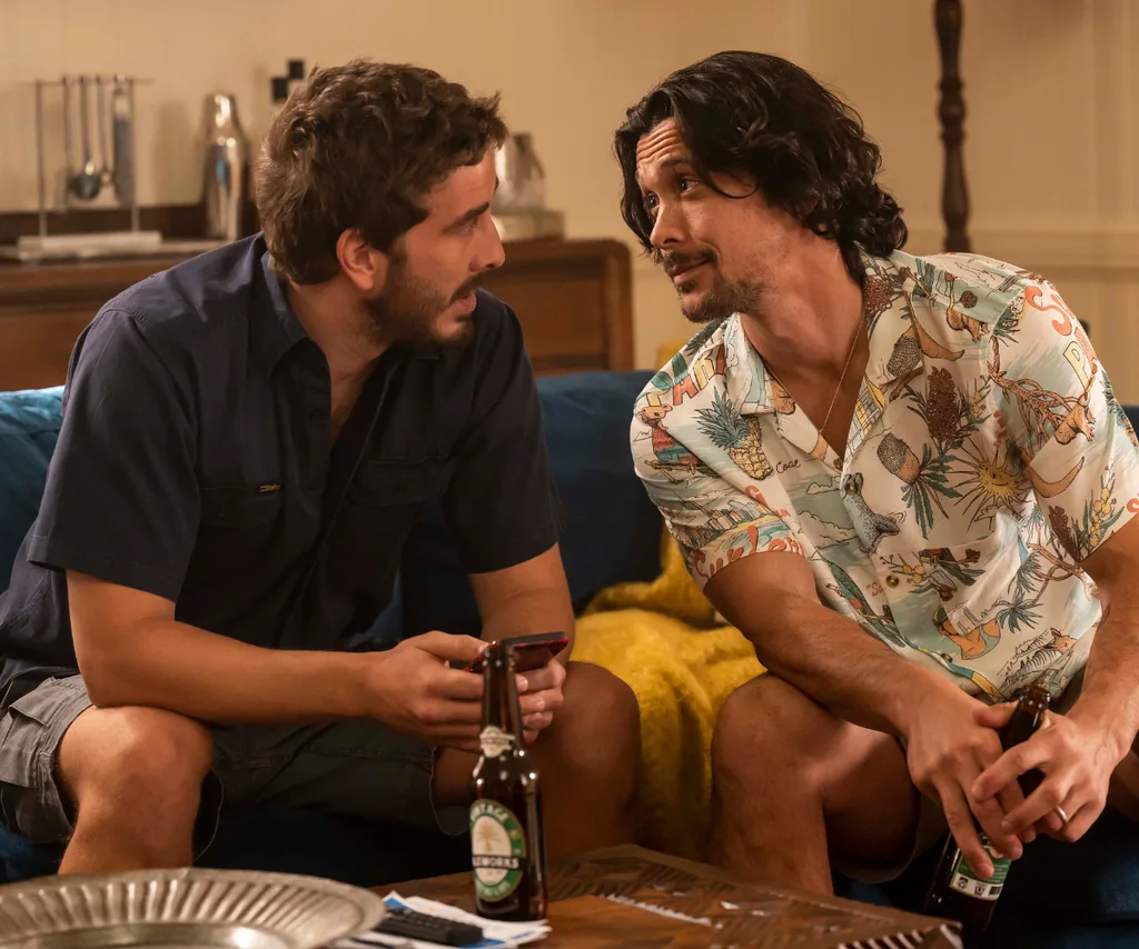 The new homegrown series begins with Charlie (Ryan Corr) trying to write a eulogy and Nate (Bob Morley) giving him advice, including what to wear to the funeral to look “sad but still bangable”.