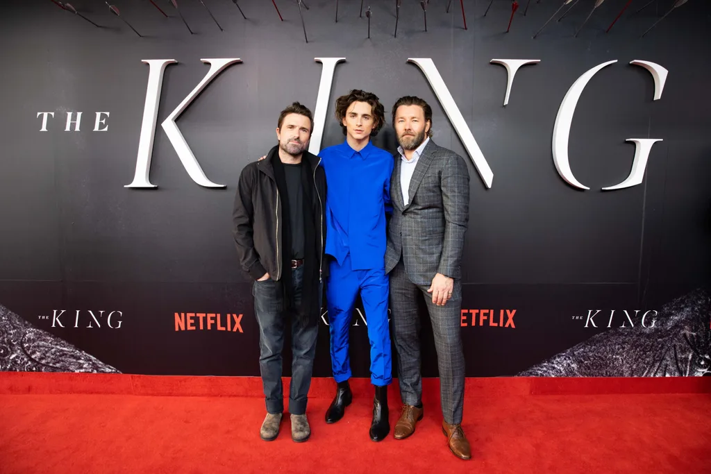 David Michôd, Timothée Chalamet and Joel Edgerton at the Sydney premiere of The King (Image: Netflix)