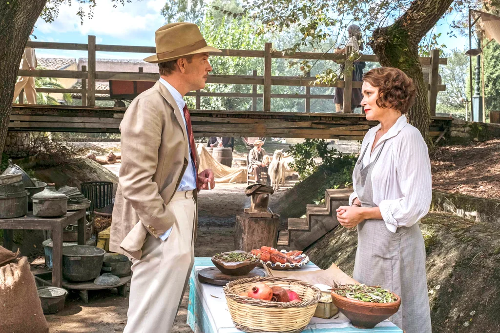 Daniel Lapaine and Keeley Hawes filming a scene from The Durrells.