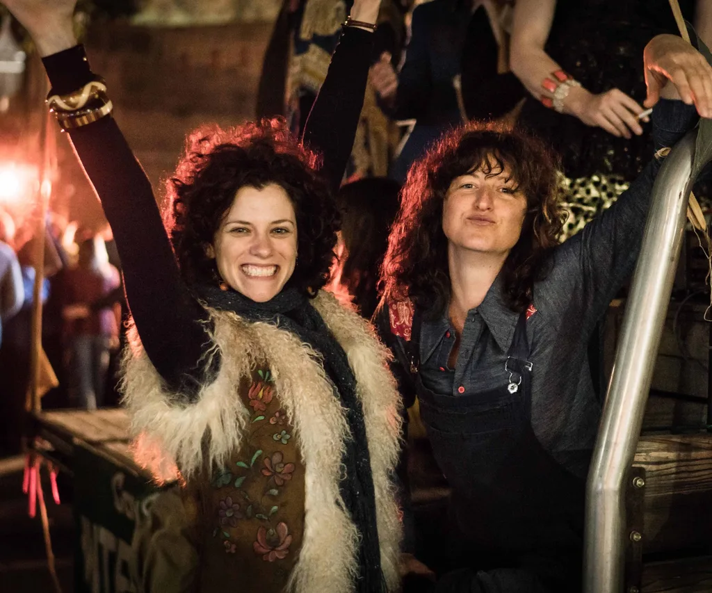 Jessica (left) plays Robyn Plaister, who clashed with police on the night of the 1978 Mardi Gras.