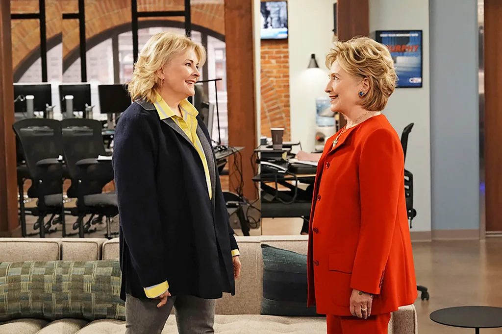 Yes, that’s Hillary Clinton in the photo above! Well, sort of. The former presidential candidate does appear in the premiere episode of the Murphy Brown reboot. Only she’s not playing herself.