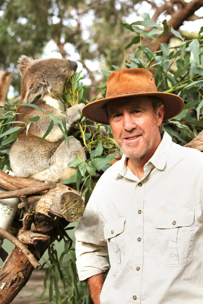 Russell with a koala he says is an “old mate”.