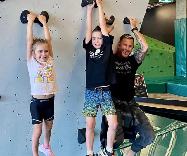The three of them, like their dad, love being active. The “baby”, Bronx, does exercises such as sit-ups and burpees for fun.
