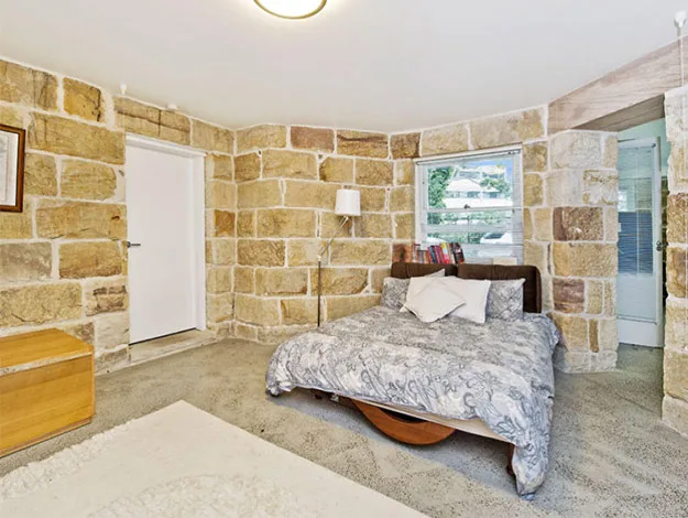 The exposed brick in the bedroom looks wonderfully rustic, giving the room a lovely feel.