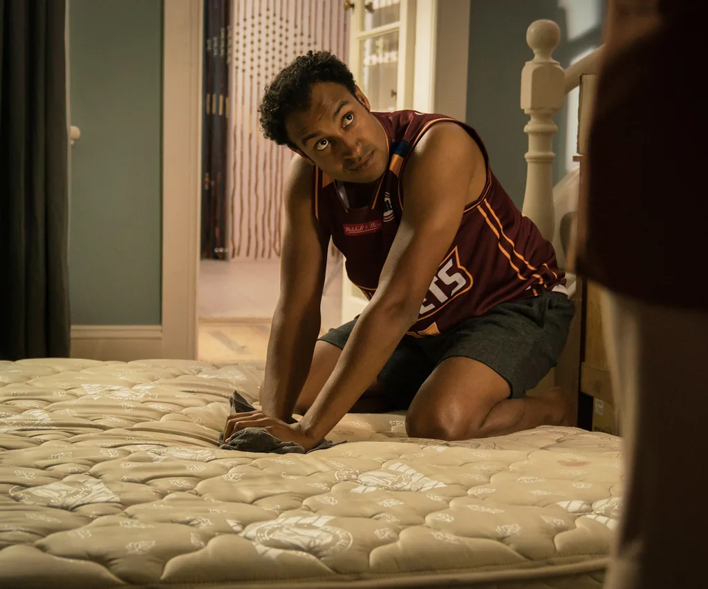To make matters worse, it isn’t even AJ’s mattress, it’s his ex-girlfriend Olivia’s (Valene Kane).