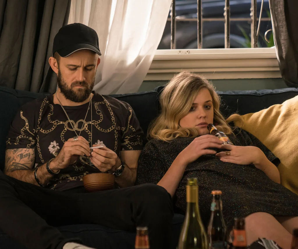The first episode, called ‘The Mattress’, sees AJ (Matt Okine) dealing with the fallout of his failed relationship by drinking every night and partying with his friend Stevie, played by Love Child’s Harriet Dyer.