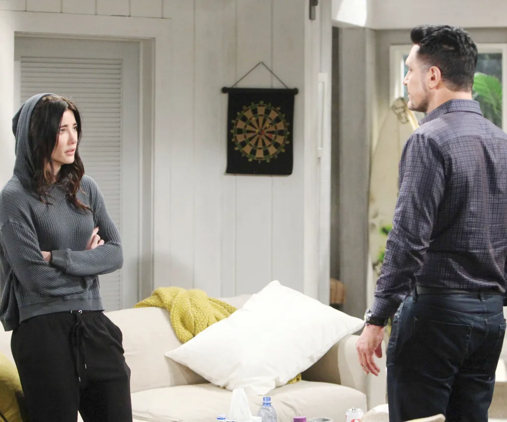 Steffy spills the beans on her torrid affair with Bill when she discovers she’s pregnant.