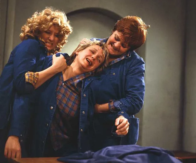 1979: Wentworth Detention Centre inmates Bea Smith (Val Lehman), Franky Doyle (Carol Burns) and Lizzie Birdsworth (Sheila Florance) were the stars of drama Prisoner. “Hard-hitting, fast action, with genuine issues,” Val, who ruled the steam press, recalled.