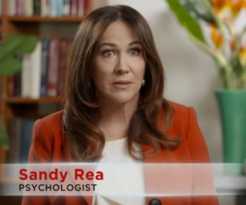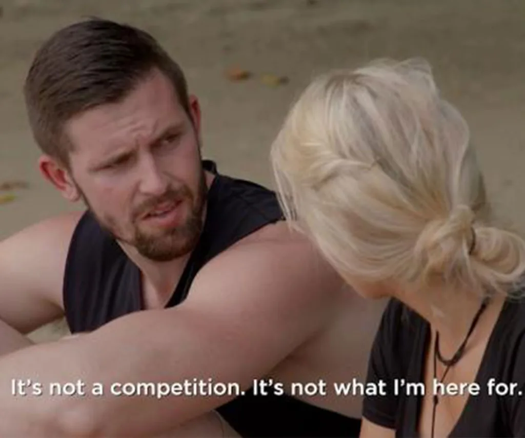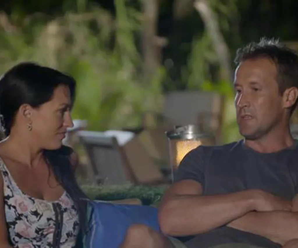 Back at the communal campfire the couples link up again. The mood is light and fun, absence makes them heart grow fonder etc. But then in comes psychologist Sandy to immediately blow the buzz.