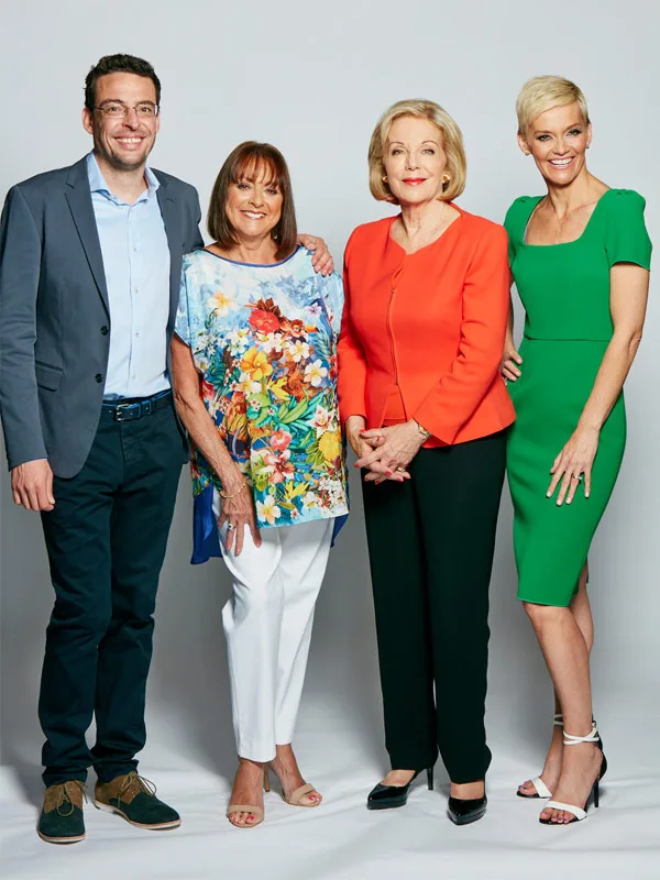 Starting with a new-look panel with Denise Scott and Angela Bishop.