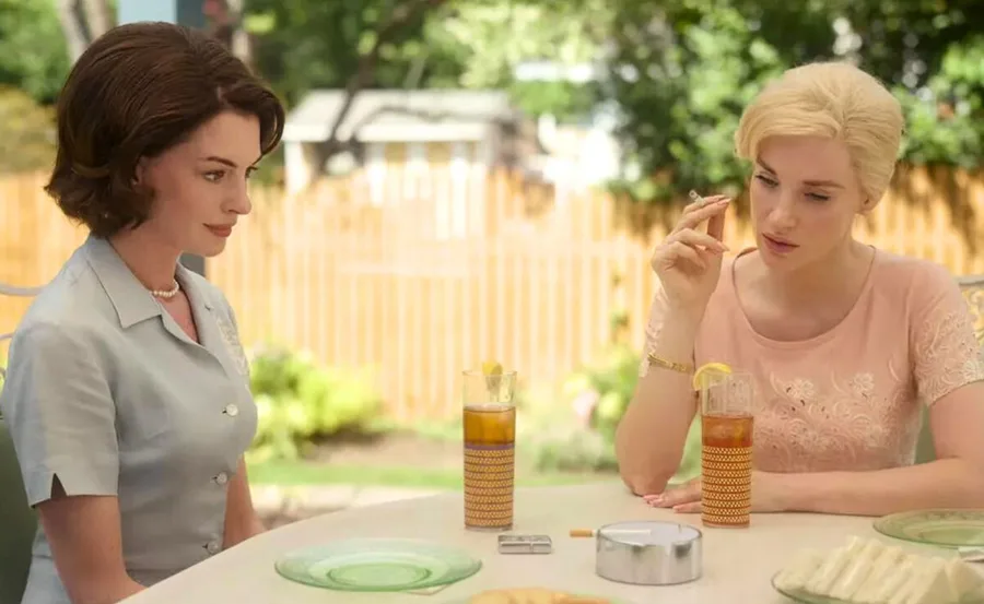 Set in the 1960s in suburban America, Mother’s Instinct follows two housewives and next-door neighbours, Alice (Jessica Chastain, 47) and Celine (Anne Hathaway, 41), who each have sons who are around the same age as one another.