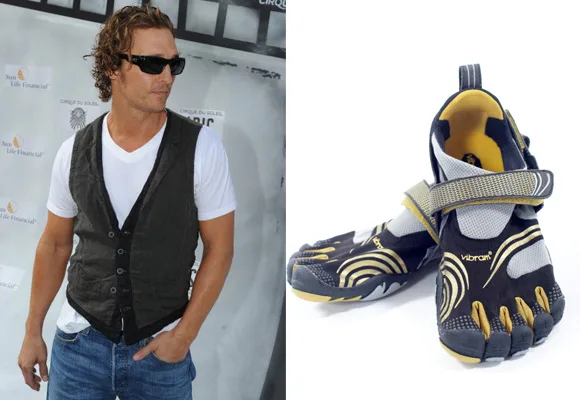Have you seen the shoes that look like rubber glove toe socks for the feet? They’re Vibram FiveFingers shoes that are meant to mimic the experience of running barefoot, yet protect your feet from dirt and debris. Hollywood actor Matthew McConaughey swears by barefoot running as a safe and effective workout that stimulates the muscles in your feet and lower legs. Other celebrities that have been seen sporting a pair of Vibrams include Kate Hudson, Channing Tatum and Scarlett Johansson.
