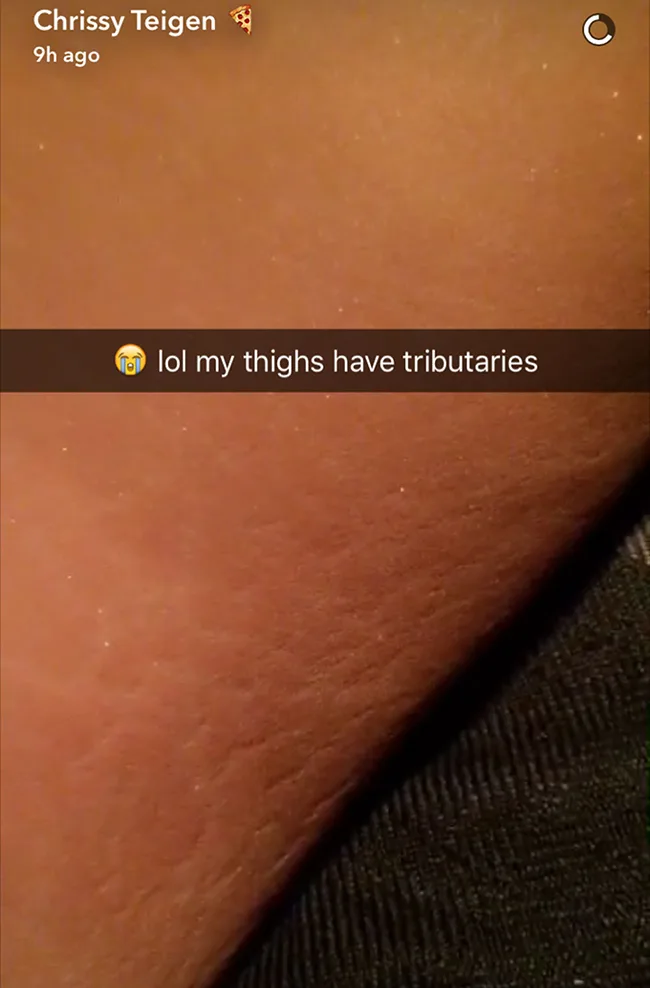 On Wednesday the model, mama, social media queen and all-round legend posted a close-up of her inner thigh to Snapchat, with the caption “Lol my thighs have tributaries”.