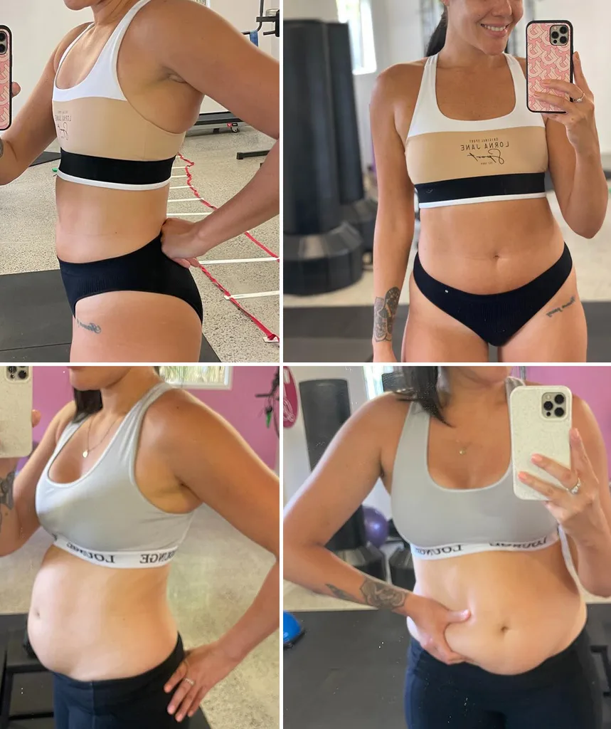 Sharing four before and after photos on Instagram, the mum-of-one revealed she had shed 13 kilos but said that the changes have been more than just physical.