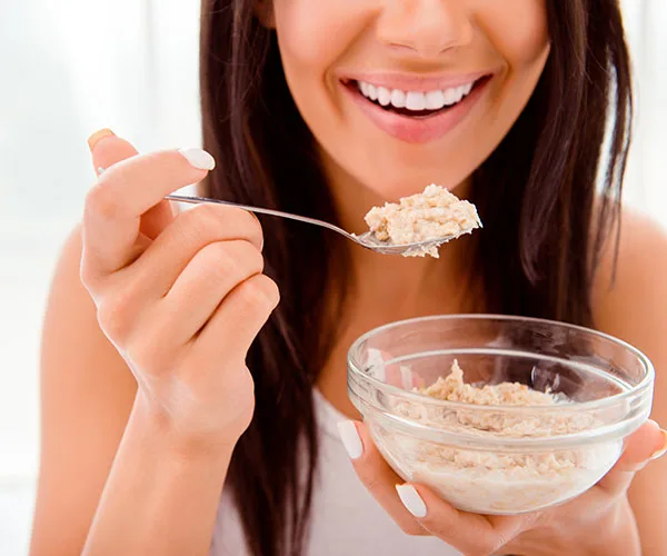 A bowl of porridge with fresh fruit will give you the same satisfaction for only a fraction of the calories.