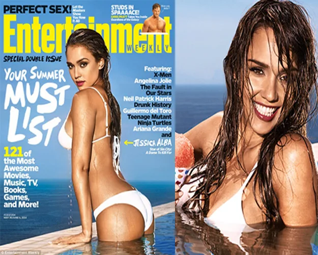 Jessica Alba has showed off her fabulous figure in an itsy-bitsy-teeny-weeny white bikini on the cover of Entertainment Weekly magazine.